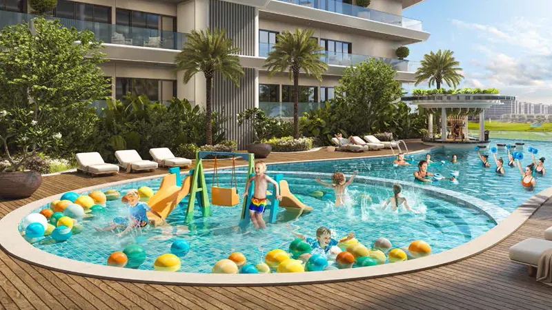 From the community’s Malibu Beach and wave surfing simulator to its lazy river and multi-sports facilities, residents have an array of leisure activities at their doorstep. Adventure-seekers can indulge in adrenaline-pumping activities like aqua sports and wall climbing, while families can delight in dedicated kids’ play areas. For those who love entertaining, the pool area transforms into a vibrant venue for unforgettable gatherings, complete with dynamic lights and pulsing music.